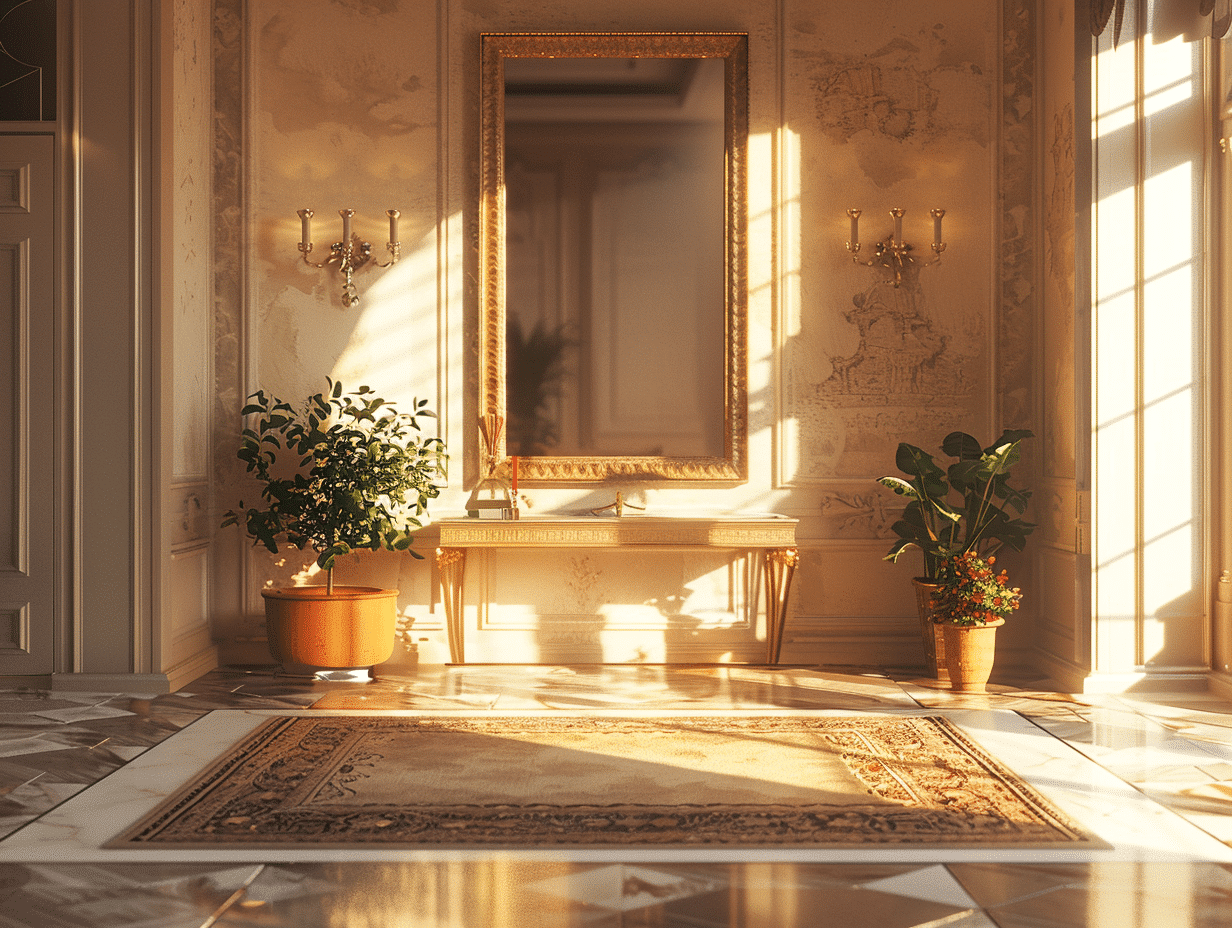 - Lumière du jour : Le miroir reflète la lumière du jour, illuminant l’entrée.